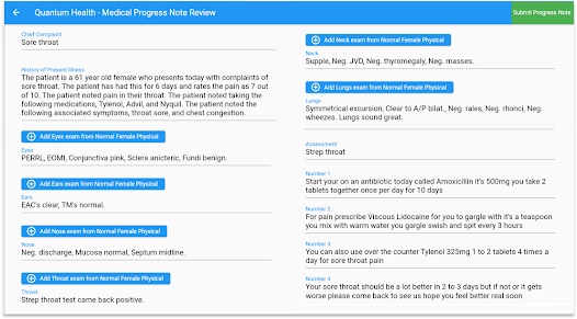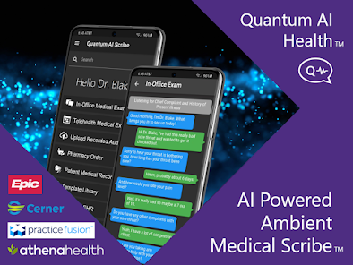 Quantum AI Health Ambient Medical Scribe is a mobile app for physicians that significantly reduces their time spent on data entry tasks for medical notes by using advanced Generative Artificial Intelligence and Machine Learning to automatically listen to the physician and patient to generate the medical progress note and ICD-10 billing codes.
